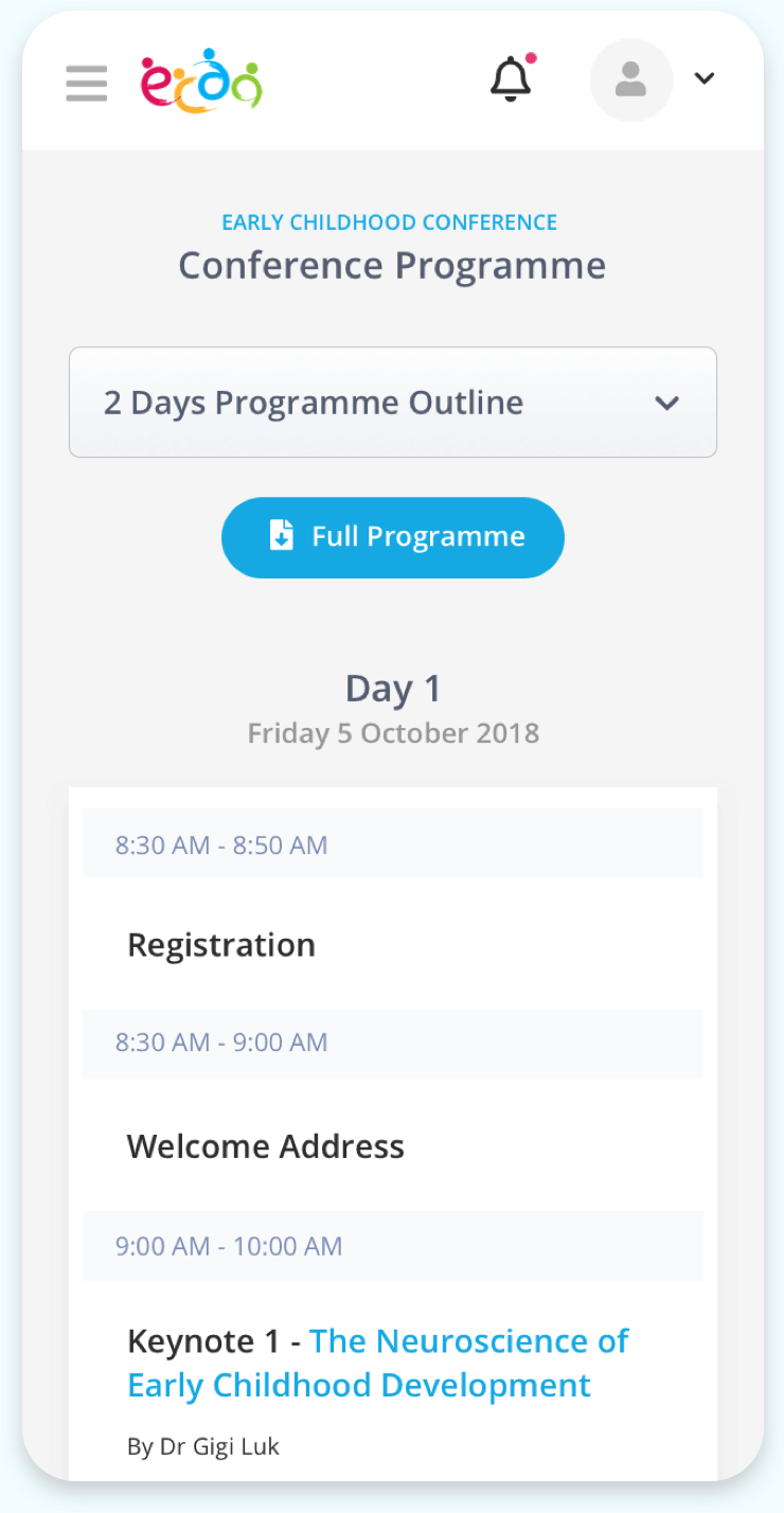 Originally a standalone microsite, the registration portal for this year's conference was decided to be integrated with the Agency's main transactional system as as part of the effort to create a single universal platform for all interactions and services with Preschool Operators.