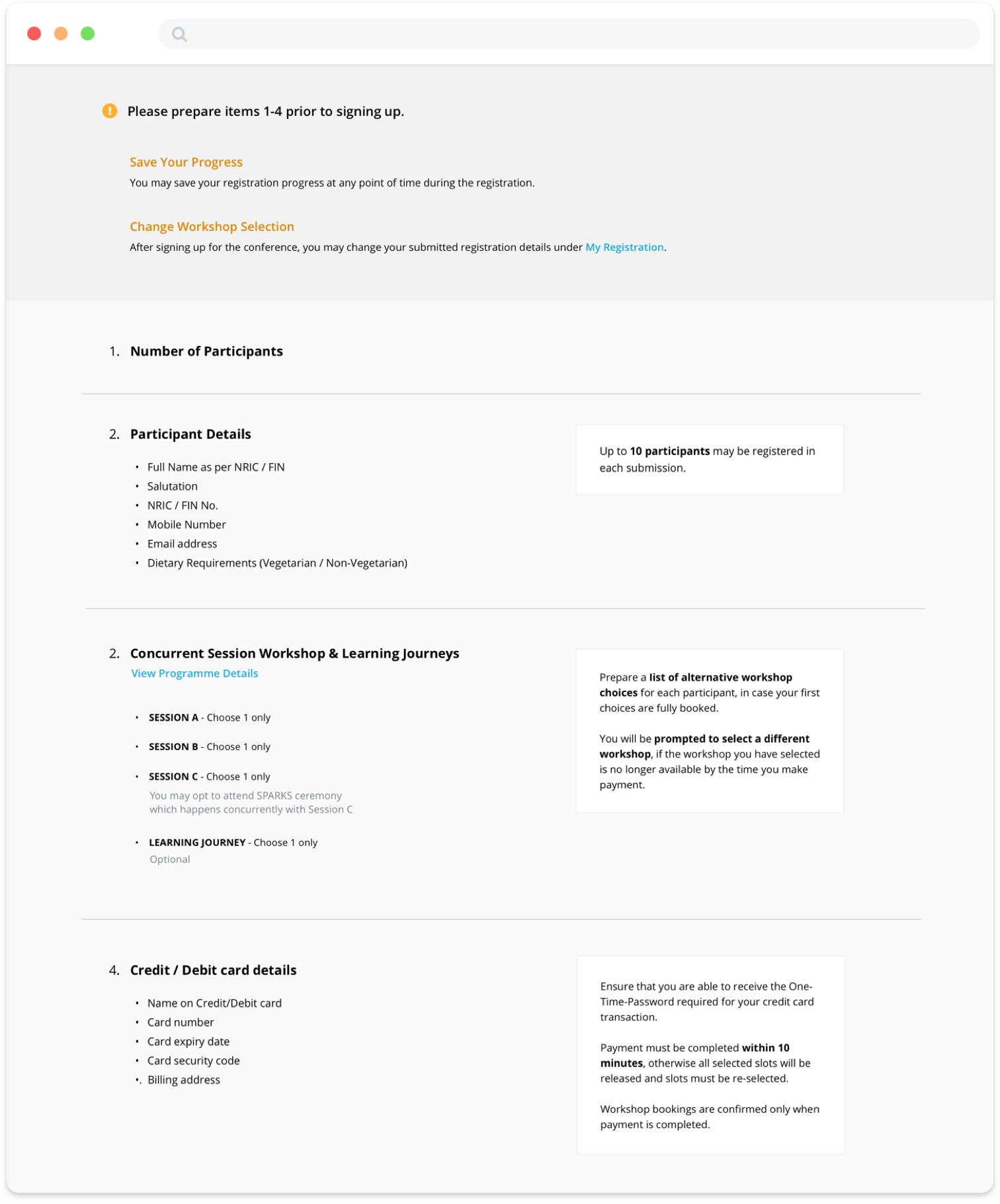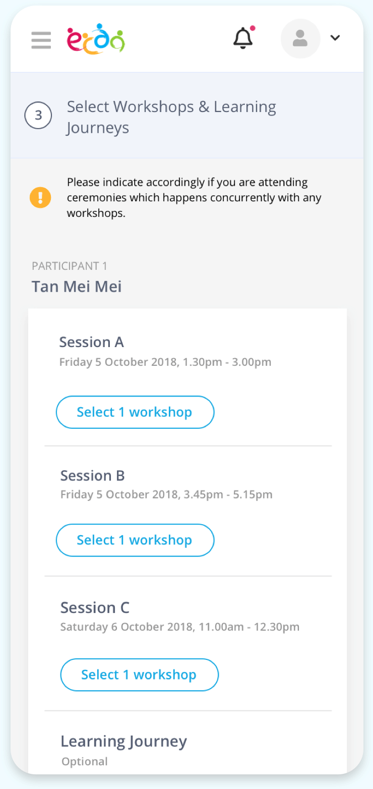 We wanted to focus on designing a friction-free registration experience, to minimise any uncertainty (in getting a seat for a desired workshop) that results from process or system flaws.