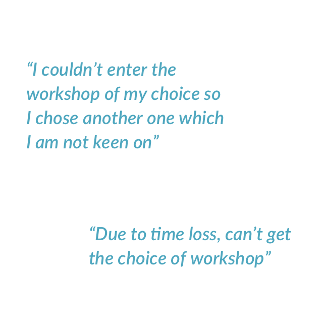 - Unable to get a slot for the preferred choice of workshop